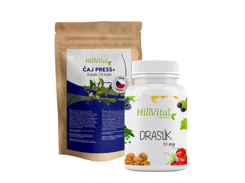 Balíček obsahuje: 1x Čaj Press+ 150 g, 1x Draslík 100 kapslí